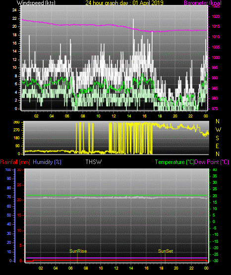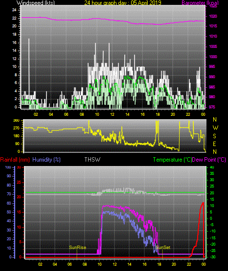Maximum windspeed = 11.0 kts from 05 °( N ) on day 01 at time 15:46