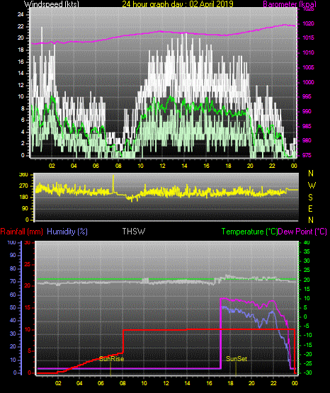 Maximum dewpoint = 10.0°C on day 02 at time 17:39