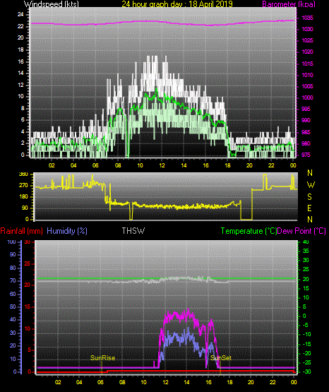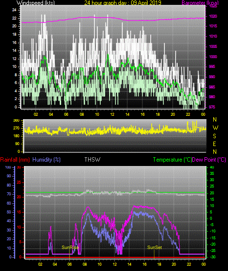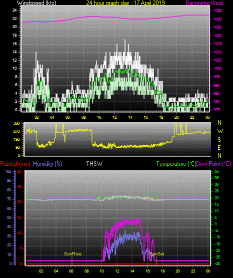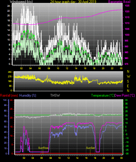 Maximum windspeed = 17.0 kts from 219 °( SW) on day 30 at time 02:28