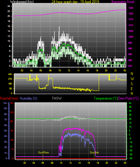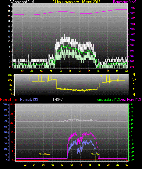Maximum windspeed = 16.0 kts from 096 °( E ) on day 03 at time 15:47