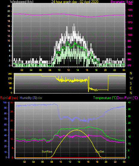 Maximum windspeed = 11.0 kts from 360 °( N ) on day 02 at time 13:27