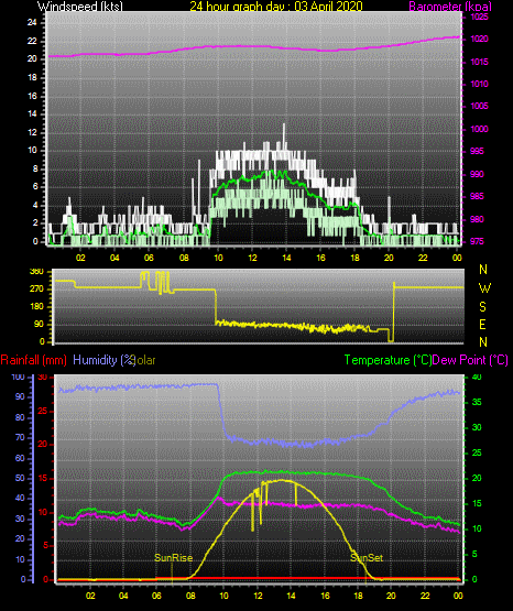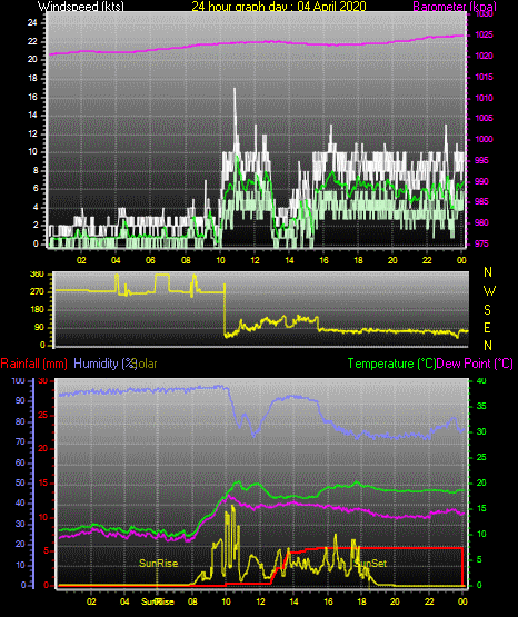 Maximum windspeed = 9.0 kts from 084 °( E ) on day 03 at time 13:52