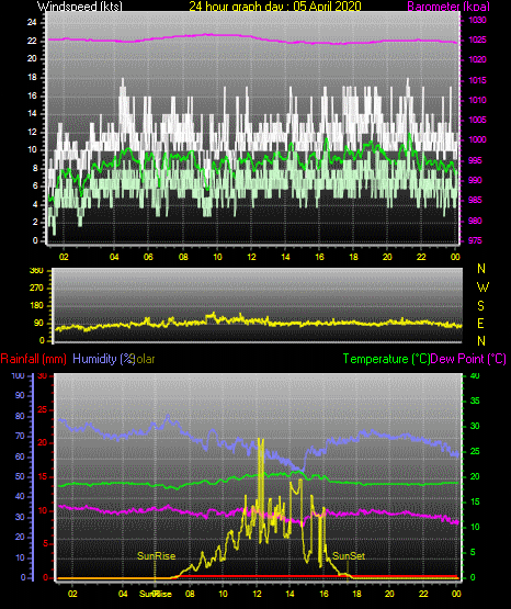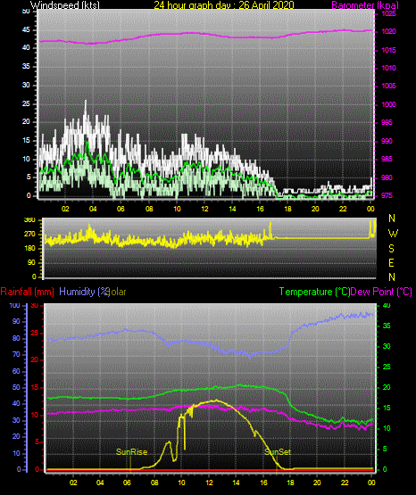 Maximum windspeed = 26.0 kts from 360°( N ) on day 14 at time 14:11
