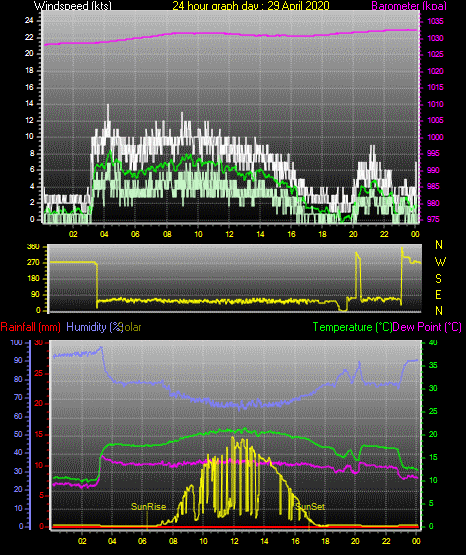 Maximum gust speed = 14 kts from 083°( E ) on day 29 at time 04:14
