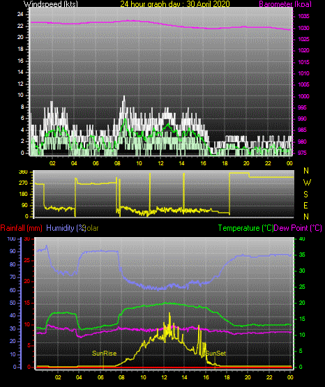 Minimum dewpoint = 9.7°C on day 30 at time 4:10