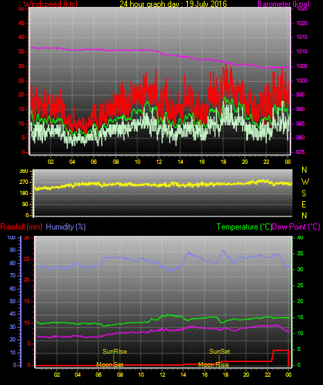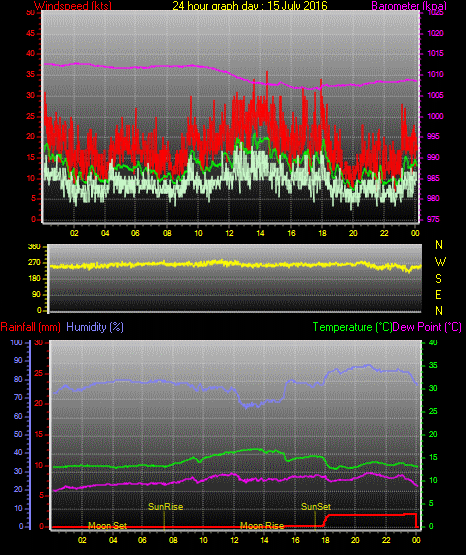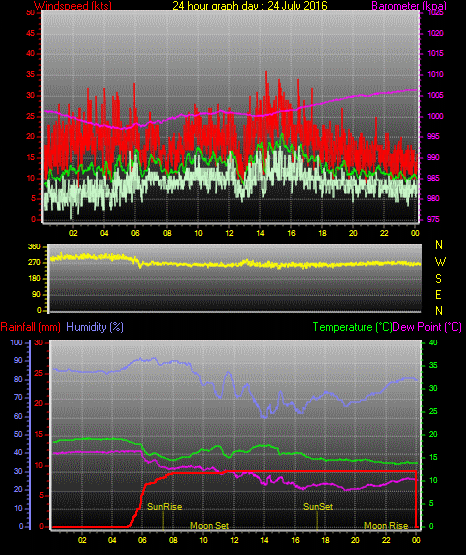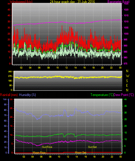 Maximum windspeed = 24.0 kts from 256 °(WSW) on day 31 at time 11:05
