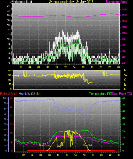 Maximum windspeed = 24.0 kts from 360°( N ) on day 14 at time 12:57