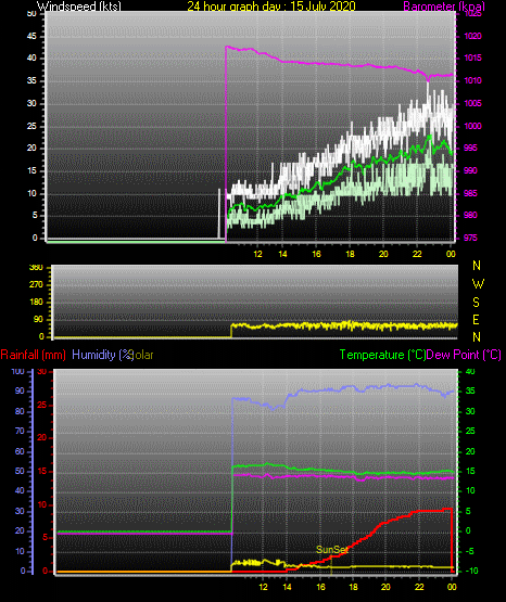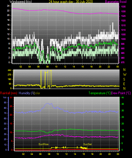 Maximum gust speed = 17 kts from 046°( NE) on day 30 at time 22:56