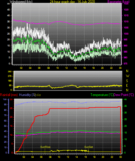 Maximum windspeed = 26.0 kts from 080 °( E ) on day 16 at time 03:16