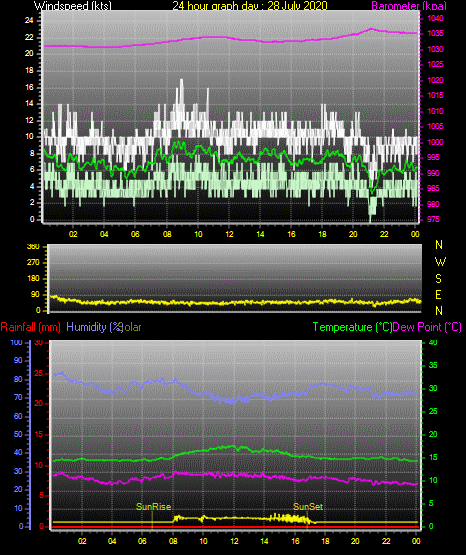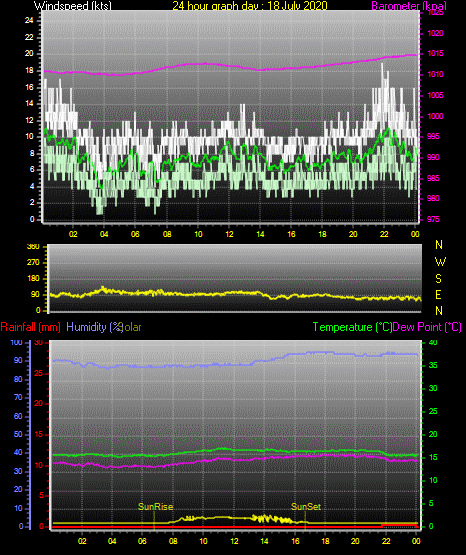 Maximum windspeed = 14.0 kts from 360 °( N ) on day 18 at time 21:54