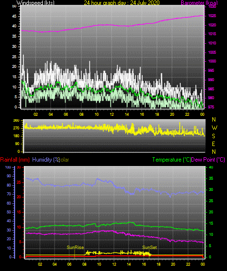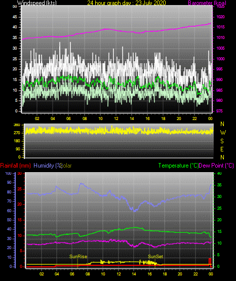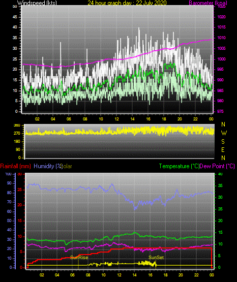 Maximum windspeed = 26.0 kts from 360°( N ) on day 22 at time 19:13