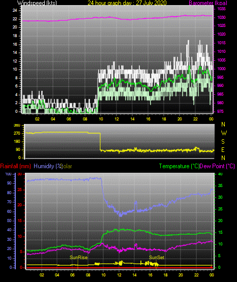 Minimum dewpoint = 13.4°C on day 17 at time 5:38