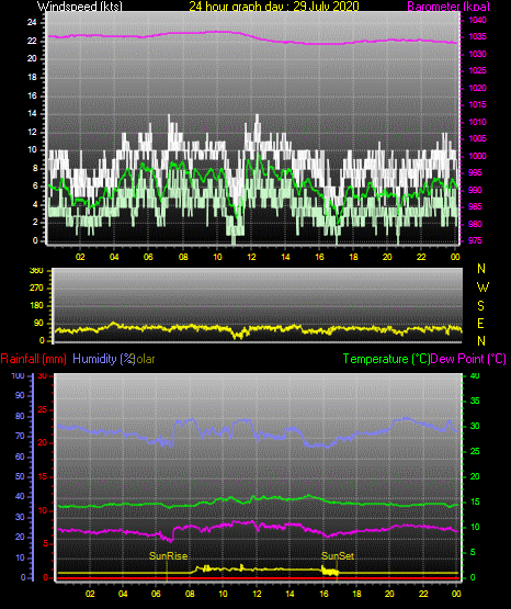 Maximum windspeed = 11.0 kts from 044 °( NE) on day 30 at time 23:00