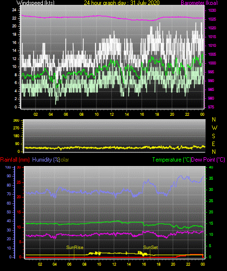 Maximum windspeed = 15.0 kts from 074 °(ENE) on day 31 at time 23:56