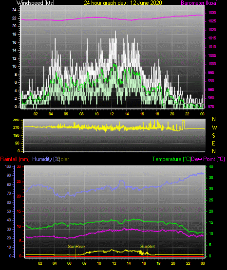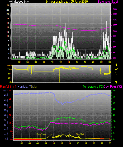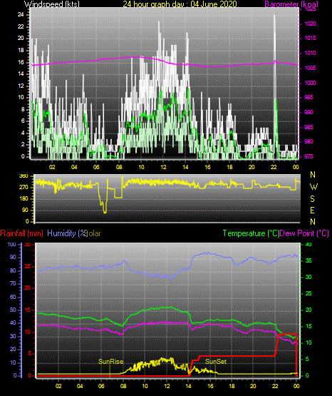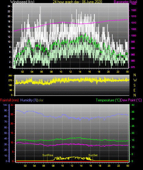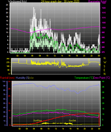 Maximum windspeed = 16.0 kts from 226 °( SW) on day 30 at time 06:25