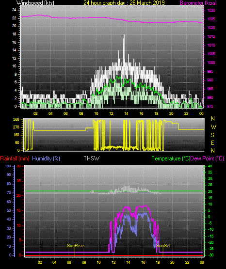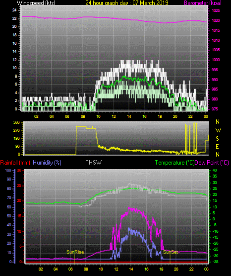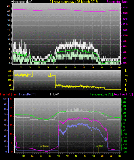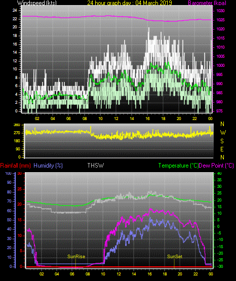 Minimum dewpoint = -29.5°C on day 04 at time 6:21