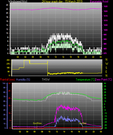 Maximum windspeed = 15.0 kts from 098 °( E ) on day 02 at time 12:08