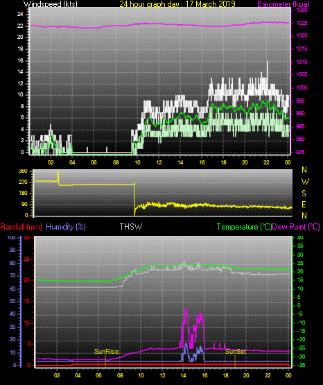 Maximum gust speed = 16 kts from 360°( N ) on day 03 at time 16:23
