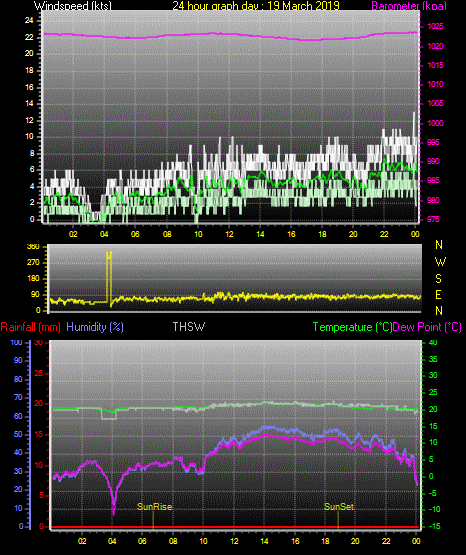 Maximum gust speed = 19 kts from 086°( E ) on day 01 at time 02:52