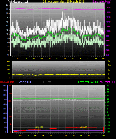 Maximum windspeed = 15.0 kts from 071 °(ENE) on day 30 at time 15:24