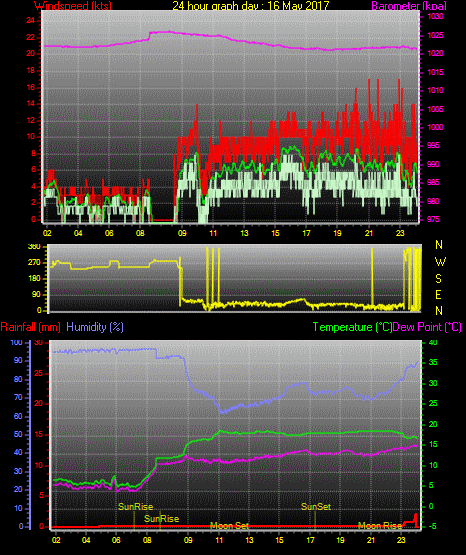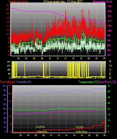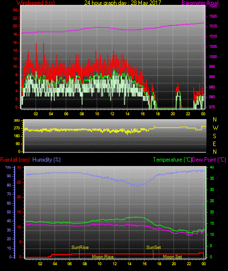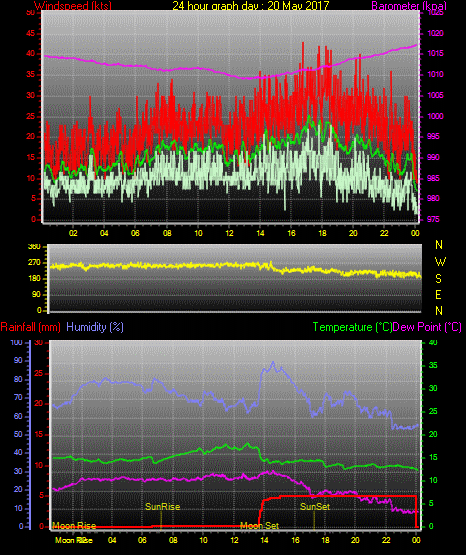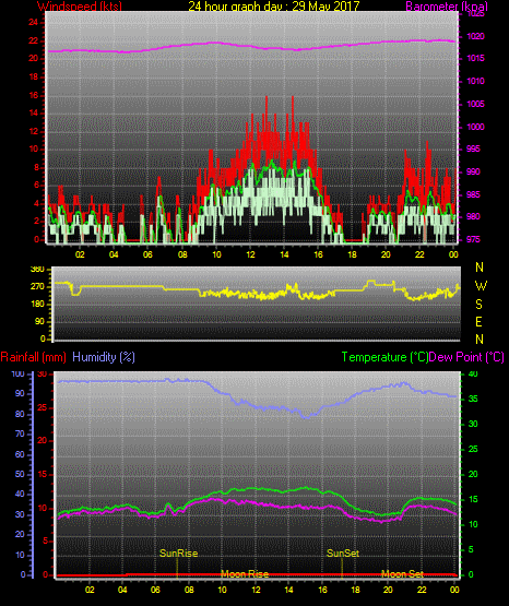 Maximum windspeed = 29.0 kts from 241°(WSW) on day 18 at time 17:39
