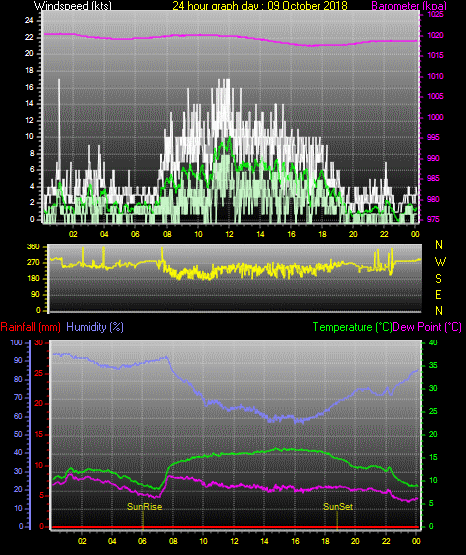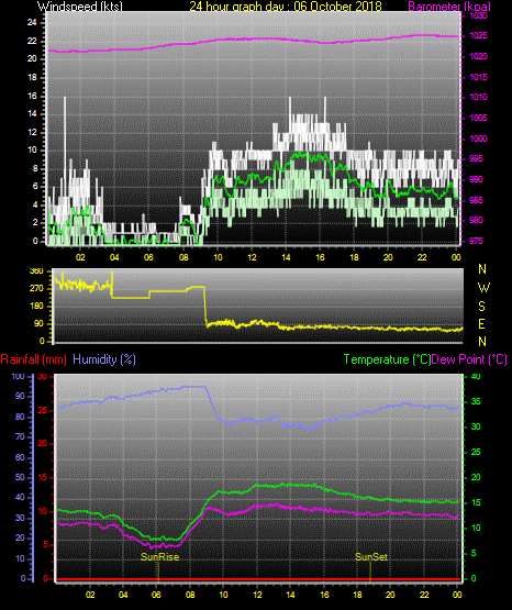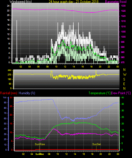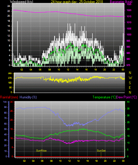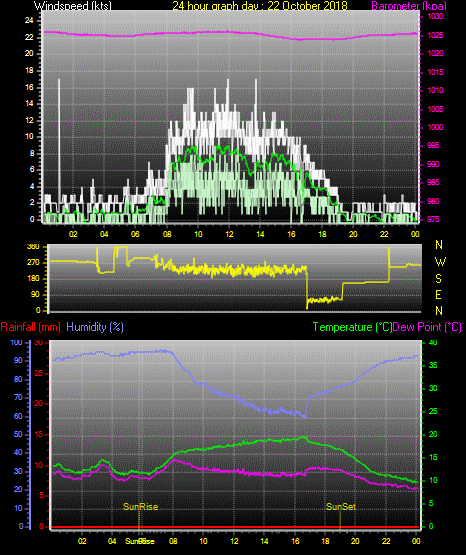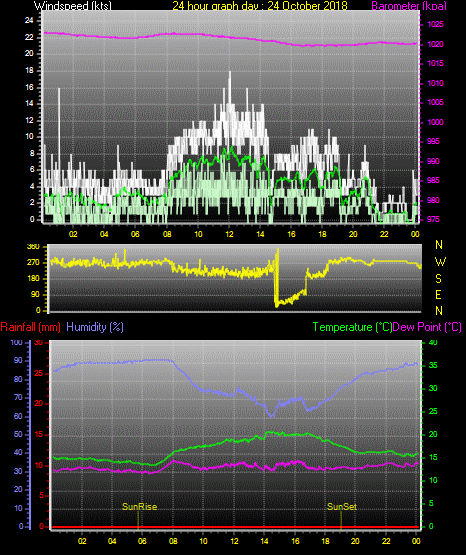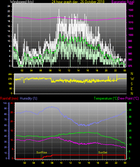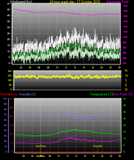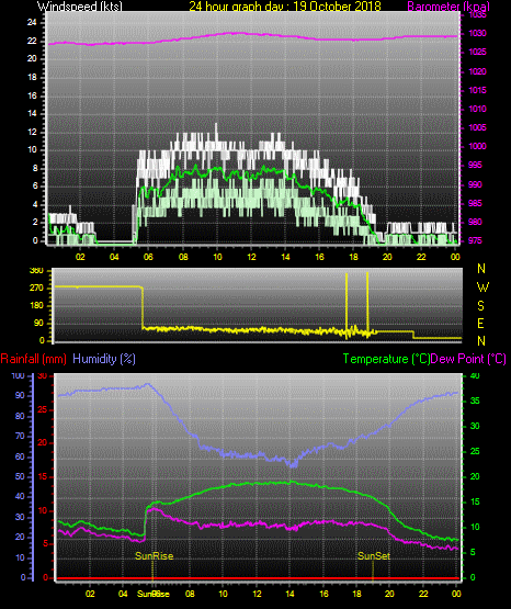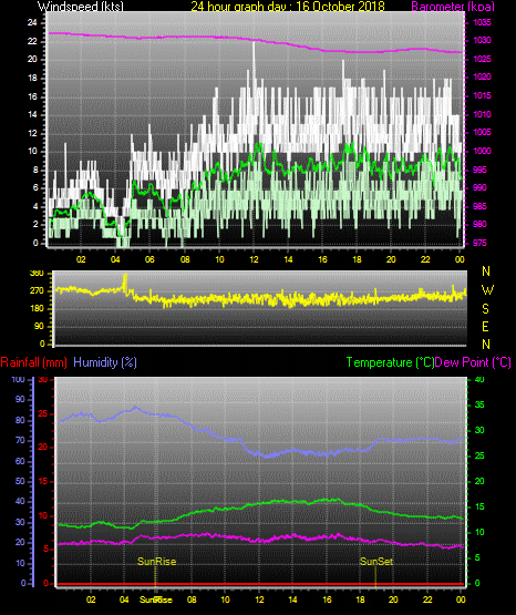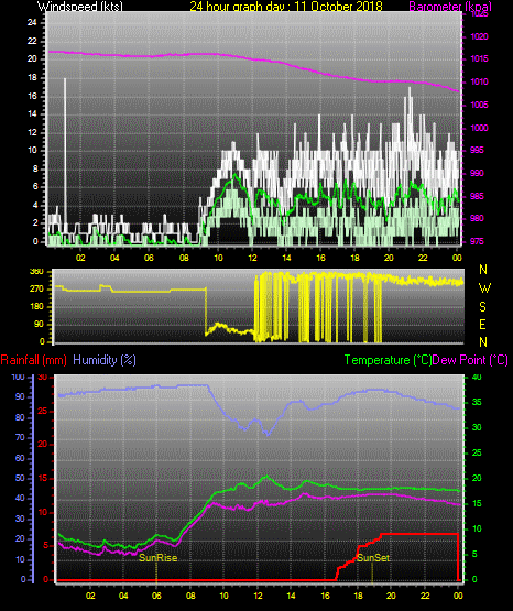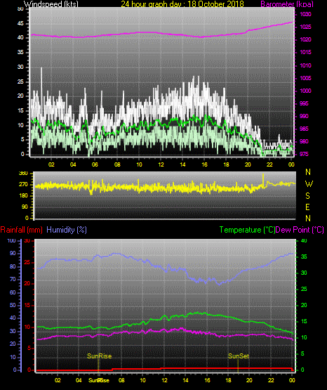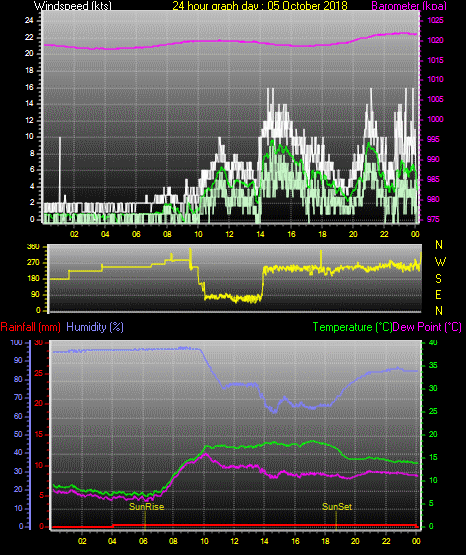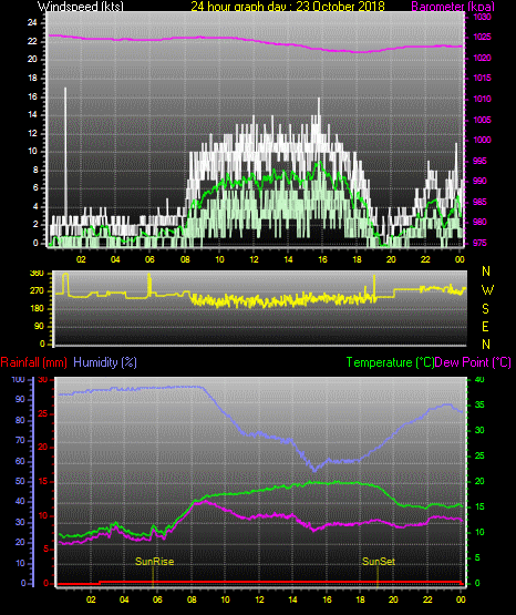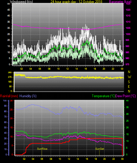 Maximum windspeed = 23.0 kts from 242°(WSW) on day 12 at time 16:14