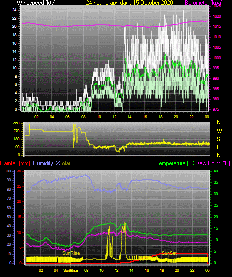 Maximum gust speed = 12 kts from 360°( N ) on day 01 at time 03:15