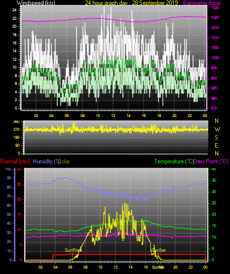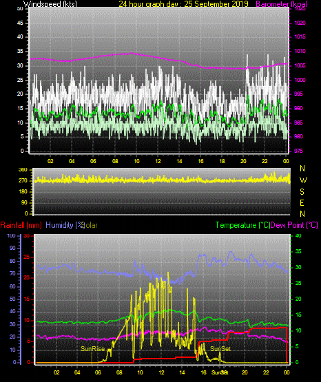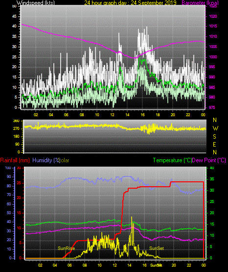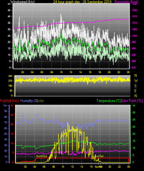 Maximum windspeed = 29.0 kts from 241°(WSW) on day 26 at time 10:08